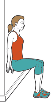 2. 양 발을 천천히 앞으로 나가면서, 투명 의자에 앉듯이 앉는다.