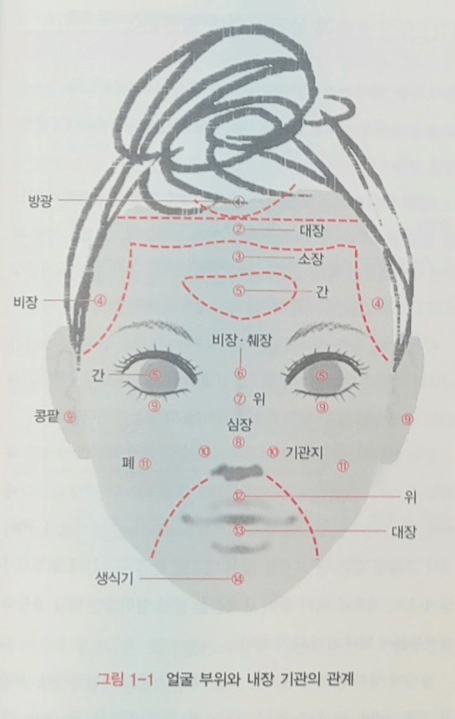 얼굴 부위와 몸의 5장 6부와의 관계는 다음과 같다. (출처 책 27 페이지)