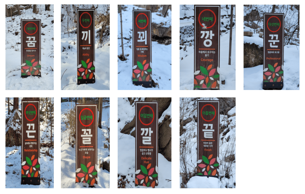 쌍기역(ㄲ) 아홉 가지 (꿈, 끼, 꾀, 깡, 꾼, 끈, 꼴, 깔, 끝) 九曲魂 구곡혼을 담아 가세요
