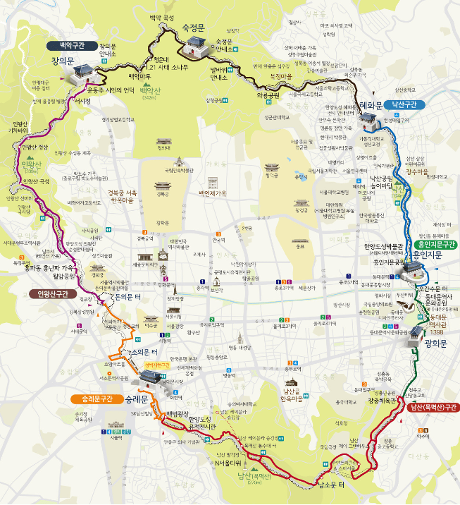 그 중, 남산(목멱산) 구간과 숭례문 (남대문) 구간의 일부를 산행 했다.