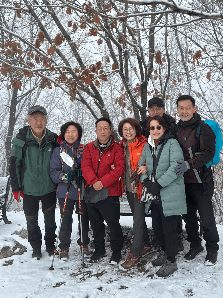 평생 친구들과 눈 내린 광교산, 화이트 크리스마스 이브 겨울 산행을 했다. (2022년 12월 24일)