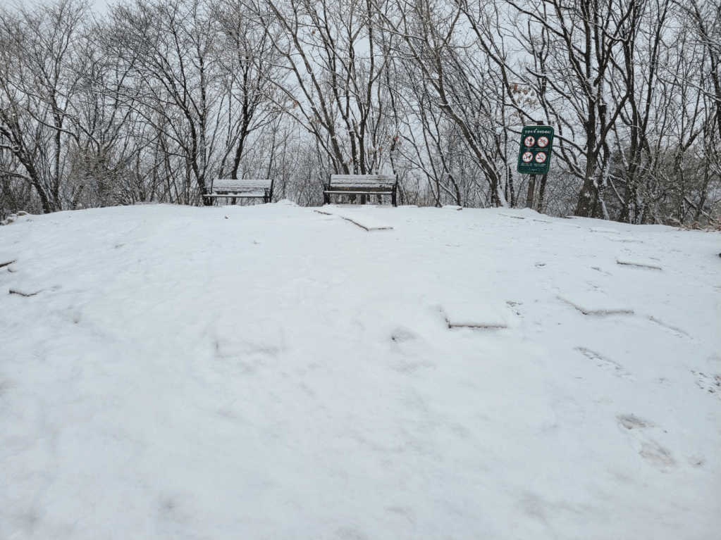 ▼ 눈에 쌓여 인적이 끊긴 광교산 광교헬기장