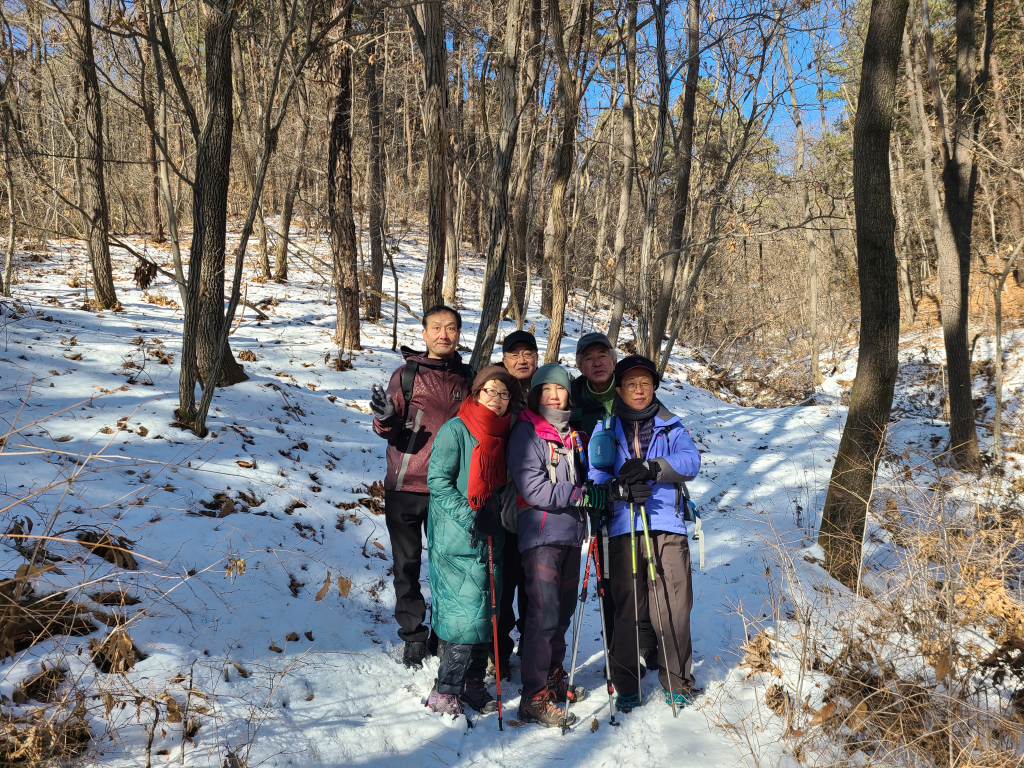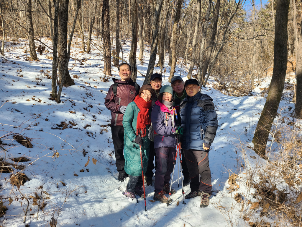 평생 친구들과 눈 내린 광교산, 화이트 크리스마스 이브 겨울 산행을 했다. (2022년 12월 24일)