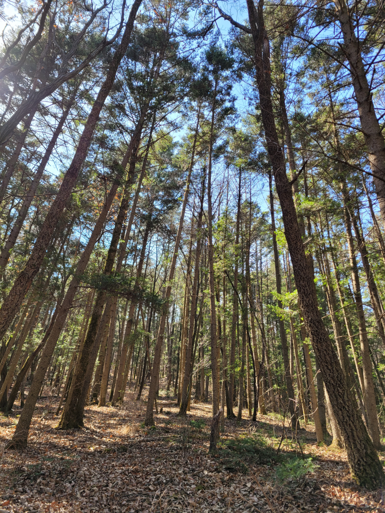 부용산에서 신원역 방향으로 하산했다. 내려오면서 부용산과 청계산 갈림길에서 목왕리 방향 (신원역 반대 방향) 으로 약 100미터 정도 가면, 전나무 숲에서 전나무숲욕(浴)을 할 수 있다 (아래 사진)