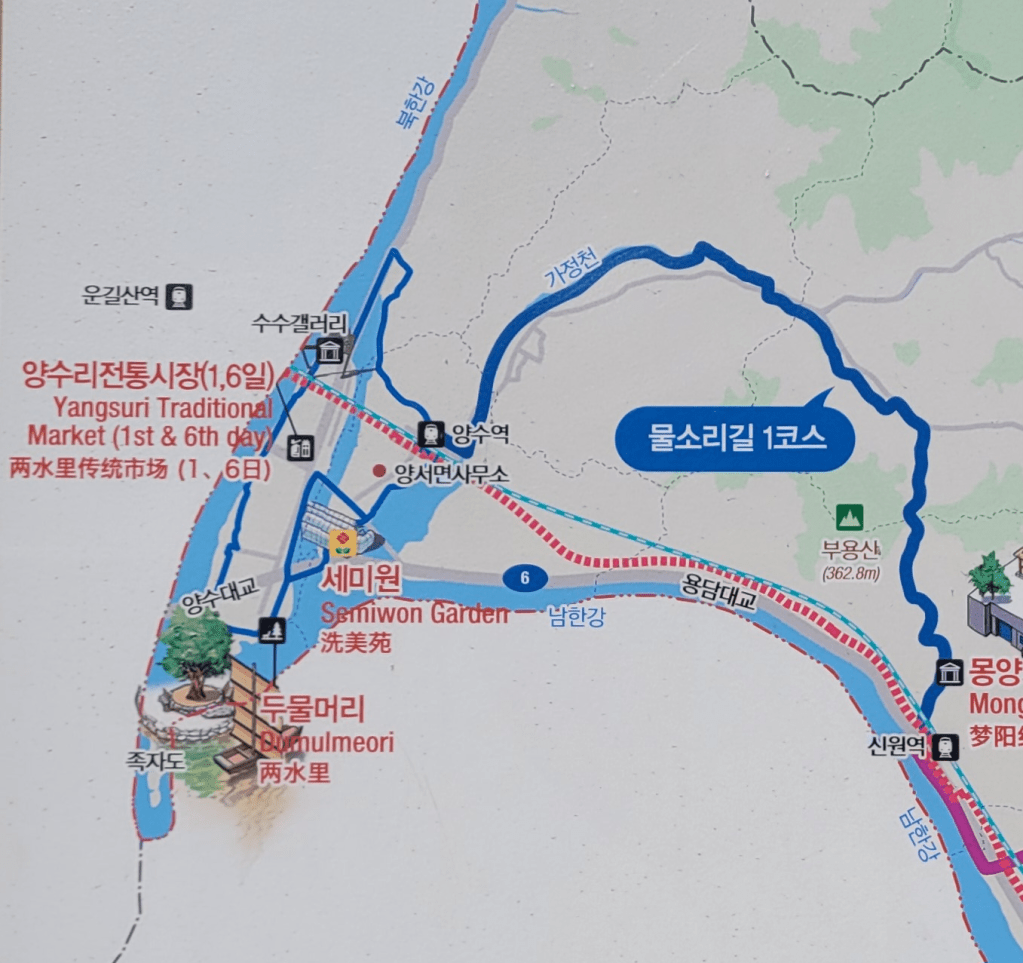 상봉역에서 만나, 경의중앙선을 타고 양수역에서 내렸다.