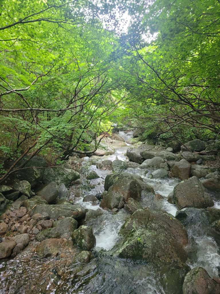 비가 그치고, 물이 불어나기 시작하는 계곡 (아래)
