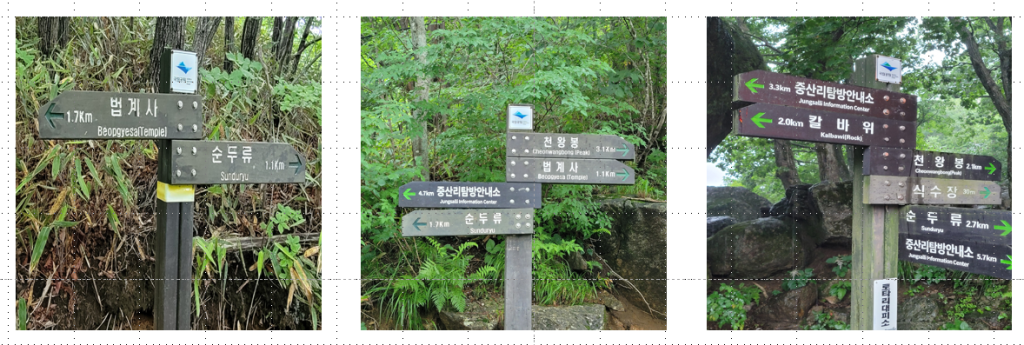 注) 수원 영통에서 중산리탐방안내소까지는 약 285 km이고, 차량으로 약 3시간 40분 정도 소요됐다.