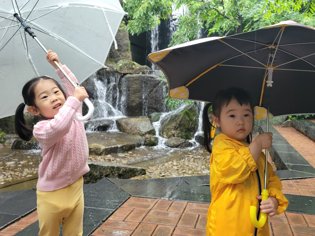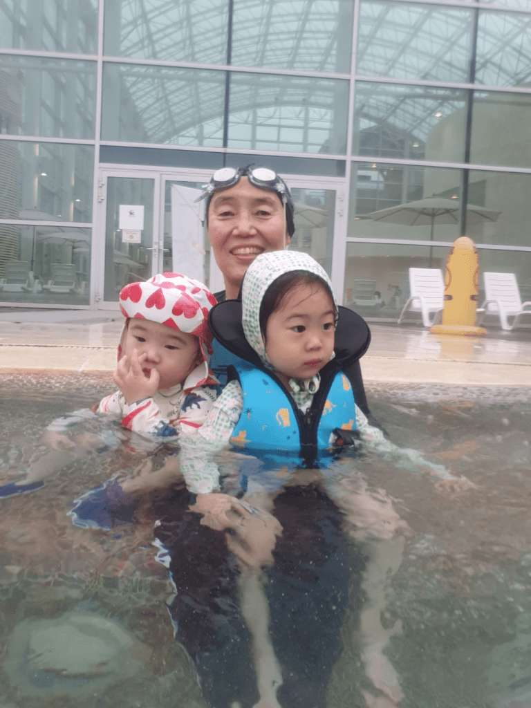 수영장에서 유주와 윤채가 할머니와 한 컷 (아래)