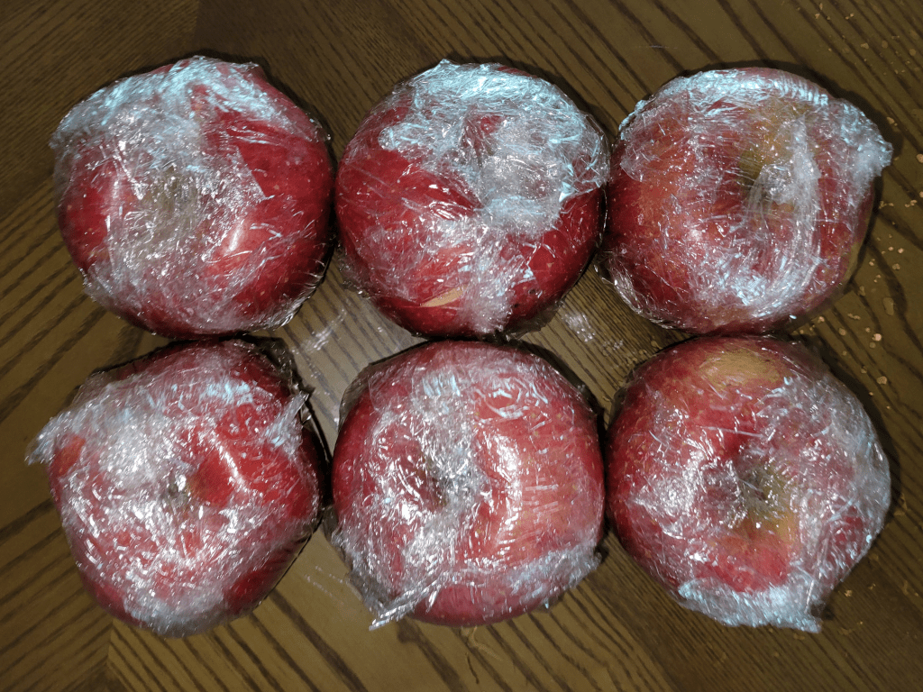 사과를 씻은 후 물기를 제거한 후, 사과의 수분이 날라가지 않도록 포장하면 된다.