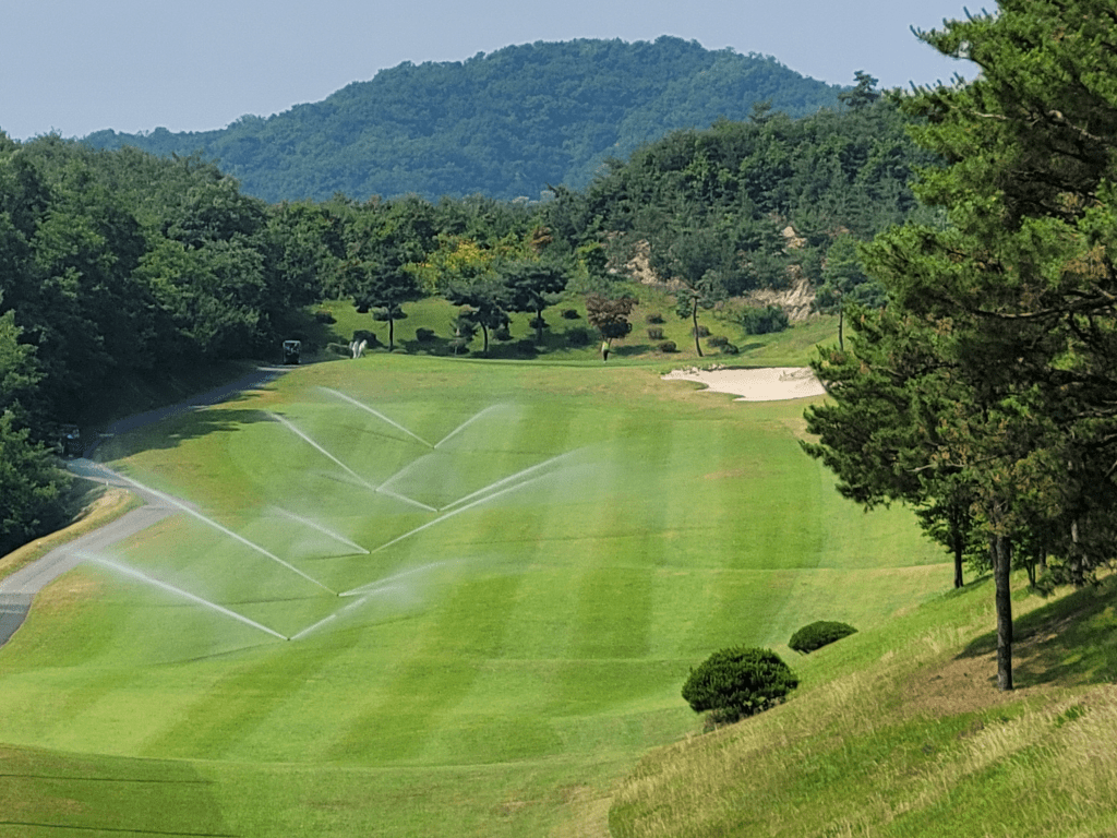 라운드를 함께 한 비에이비스타CC는 대덕산 (309.3 m) 자락의 아름다운 자연 환경과 융화된 경관을 자랑하는 6개 코스, 54홀 골프장 이다.